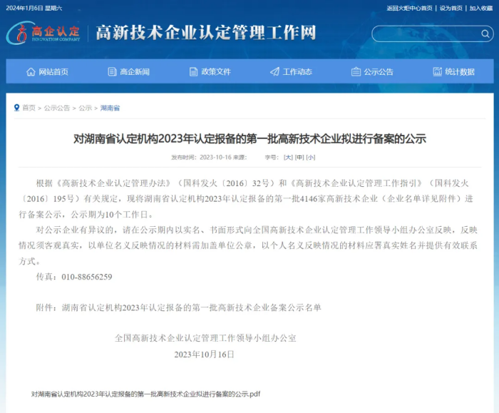 2023年10月,高新技術企業認定官網公布了湖南省認定機構2023年認定報備的第一批高新技術企業名單,我司順利通過復審認定,這是自2017年首次認定為國家高新技術企業以來,公司第三次躋身國家高新技術企業行列,并于近日收到了由湖南省科學技術廳、湖南省財政廳、國家稅務總局湖南省稅務局聯合頒發的“高新技術企業”認定證書。